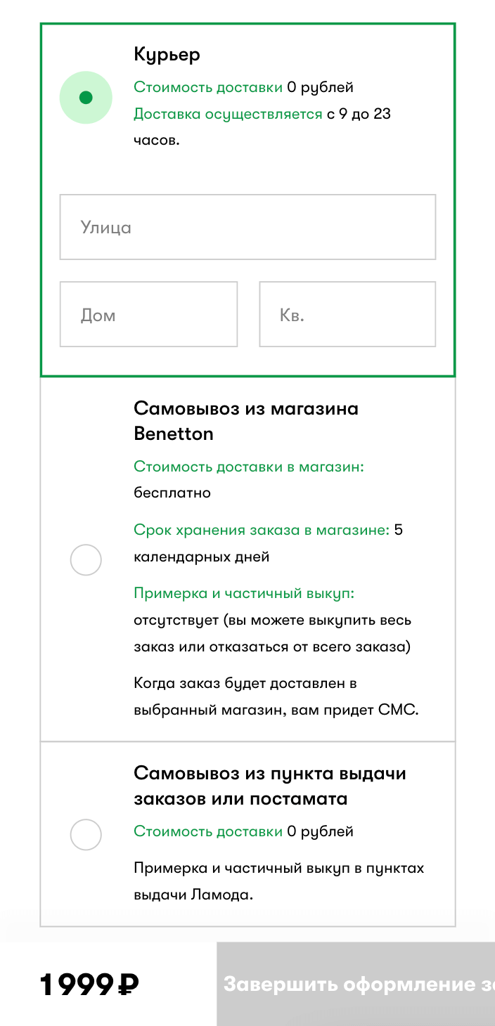 Товарное соседство, региональные ограничения, кратность упаковок, условия перевозки, габариты товаров - любые параметры товаров корзины учитываются при расчете условий доставки и выбираемой транспортной компании.