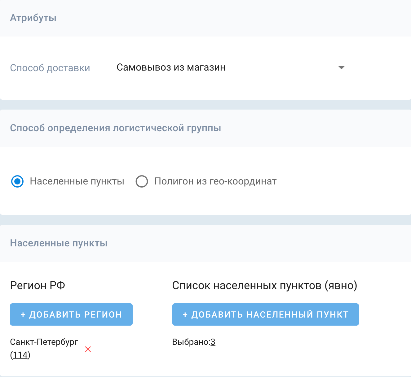 Привязывайте магазины и склады к регионам, конкретным городам или произвольным полигонам - точные координаты покупателей дополнительно сопоставляются с гео-справочниками логистических компаний для безошибочного определения адреса.